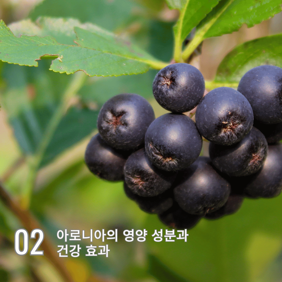 아로니아는 ‘블랙초크베리’라고도 불리는데, 세계적으로 인정받는 슈퍼푸드다. 특히 안토시아닌, 폴리페놀 같은 항산화 성분이 풍부해서 노화 예방, 면역력 강화에 정말 좋다.
