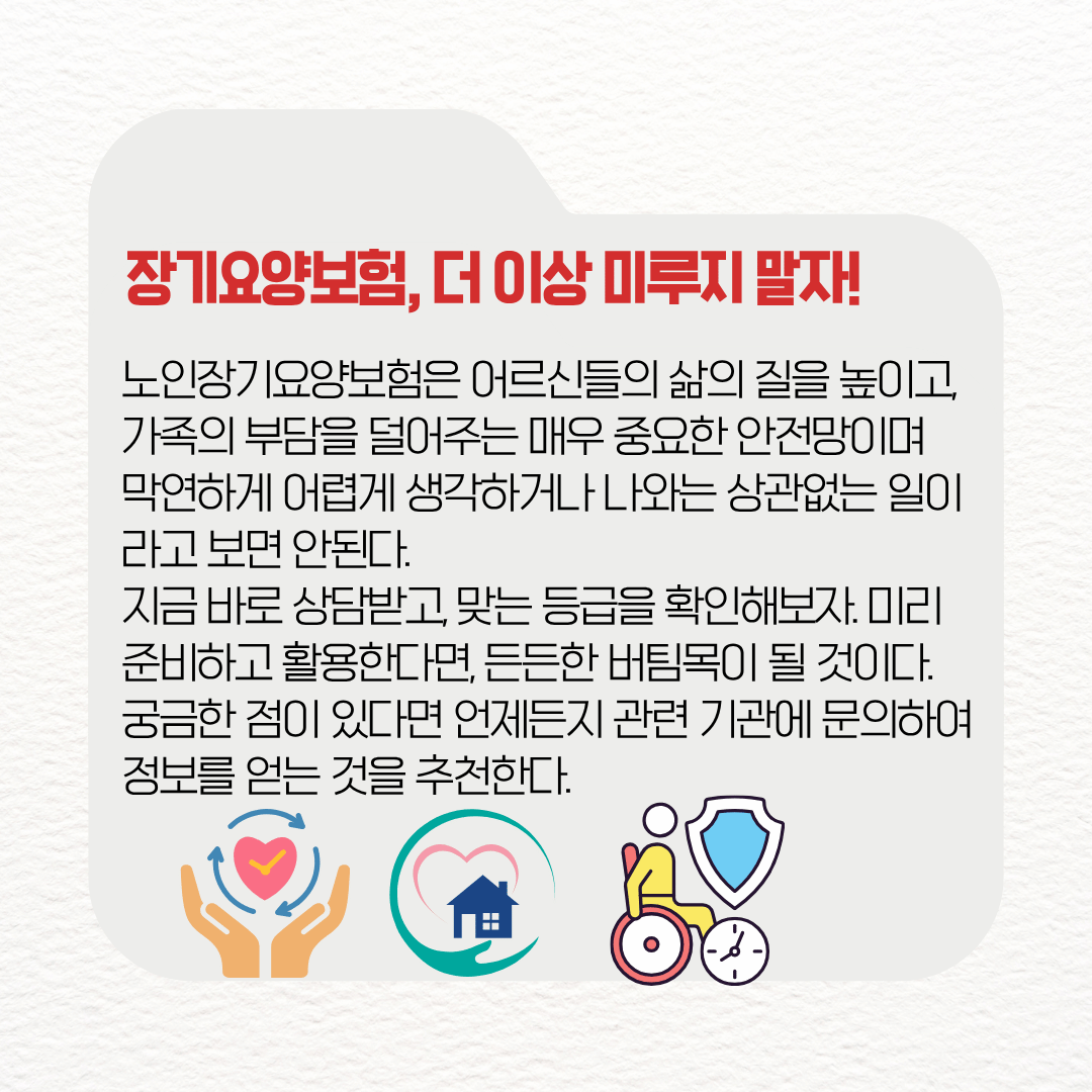 장기요양보험, 더 이상 미루지 말자!