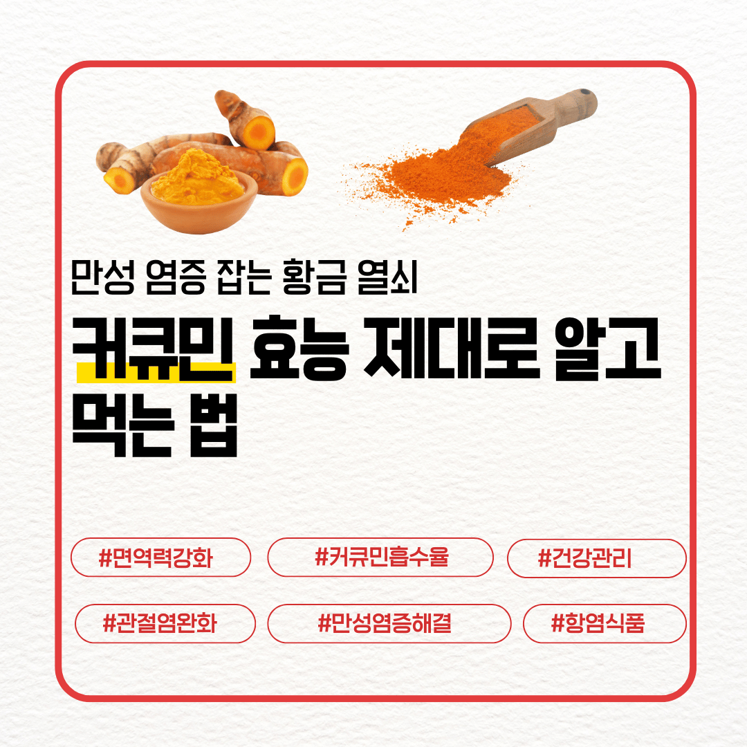 커큐민은 '그냥 건강식품'이 아니라, 만성 염증을 잡고 면역, 뇌 건강, 노화 예방까지 책임지는 ‘올인원 천연 솔루션’이라고 볼 수 있다. 다만 제대로 흡수되는 형태로 똑똑하게 먹는 게 핵심!
