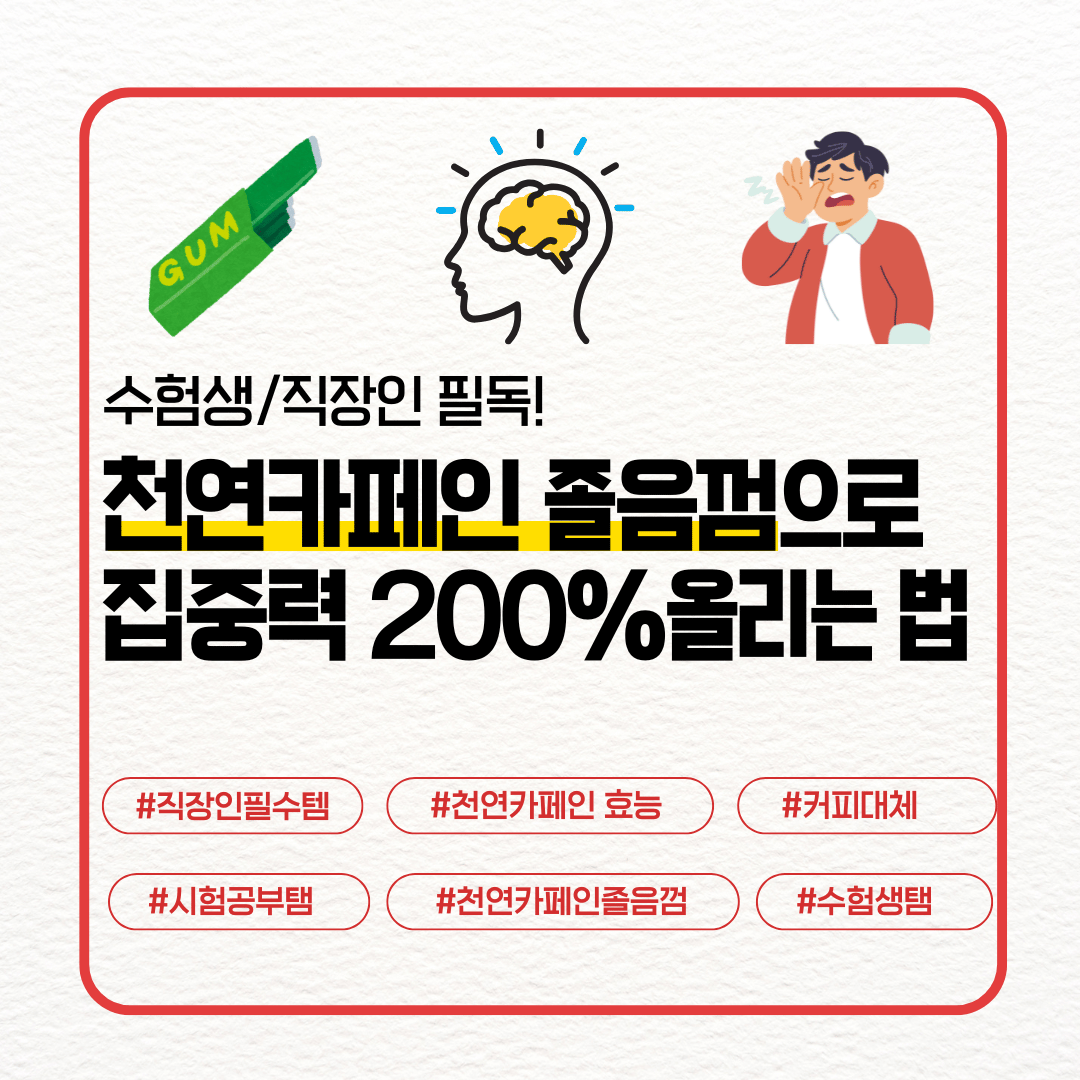 요즘 SNS나 편의점에서 자주 보이는 ‘천연카페인 졸음껌’. 단순히 졸음 방지용 껌이 아니라, 커피보다 깔끔하게 집중력을 유지시켜주는 아이템으로 입소문을 타고 있다.