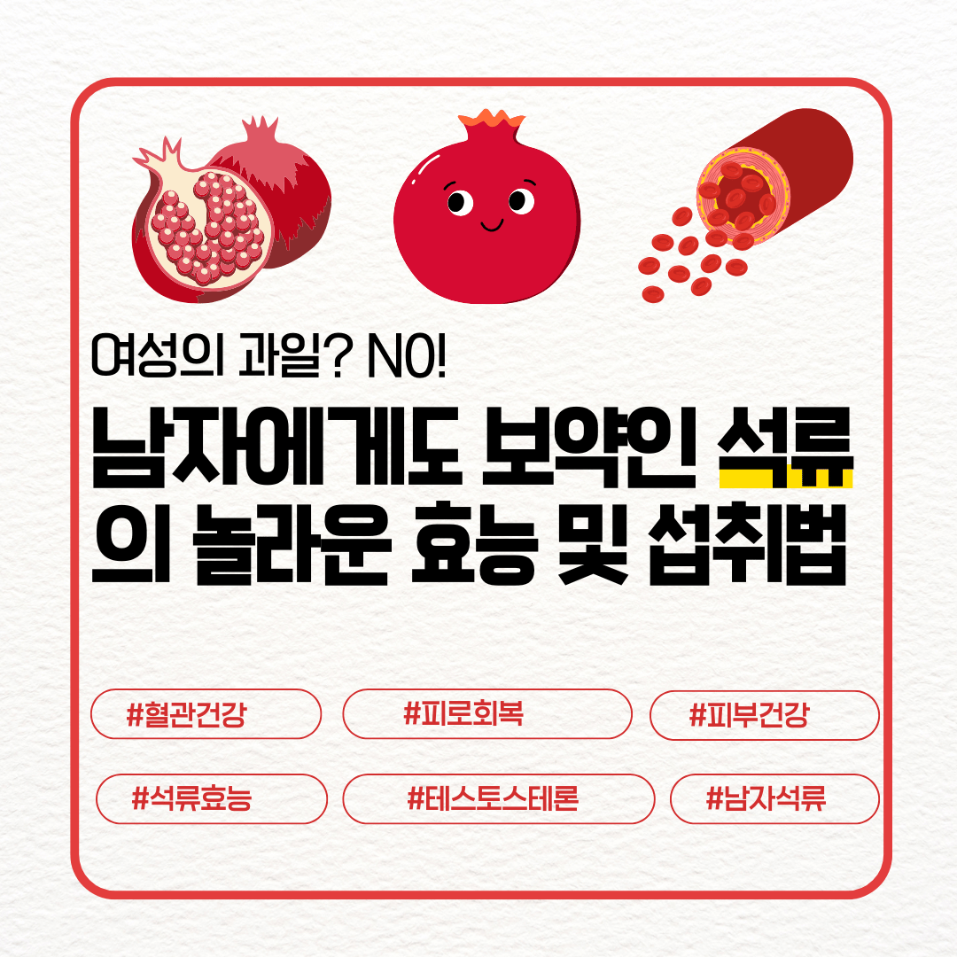 이제 석류는 여성만의 과일이 아니다. 피로 회복, 혈관 건강, 호르몬 밸런스, 피부 관리까지—남성의 삶의 질을 높이는 슈퍼푸드로 자리 잡고 있다.