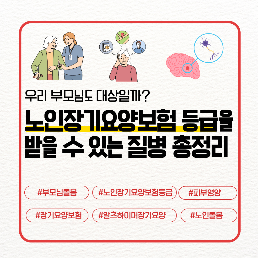 노인장기요양보험에서 중요한 건 ‘노인성 질환’이다. 단순히 나이가 많다고 해서 대상이 되는 게 아니라, 질환으로 인해 일상생활이 어렵고 지속적인 도움이 필요할 때 대상자가 된다.