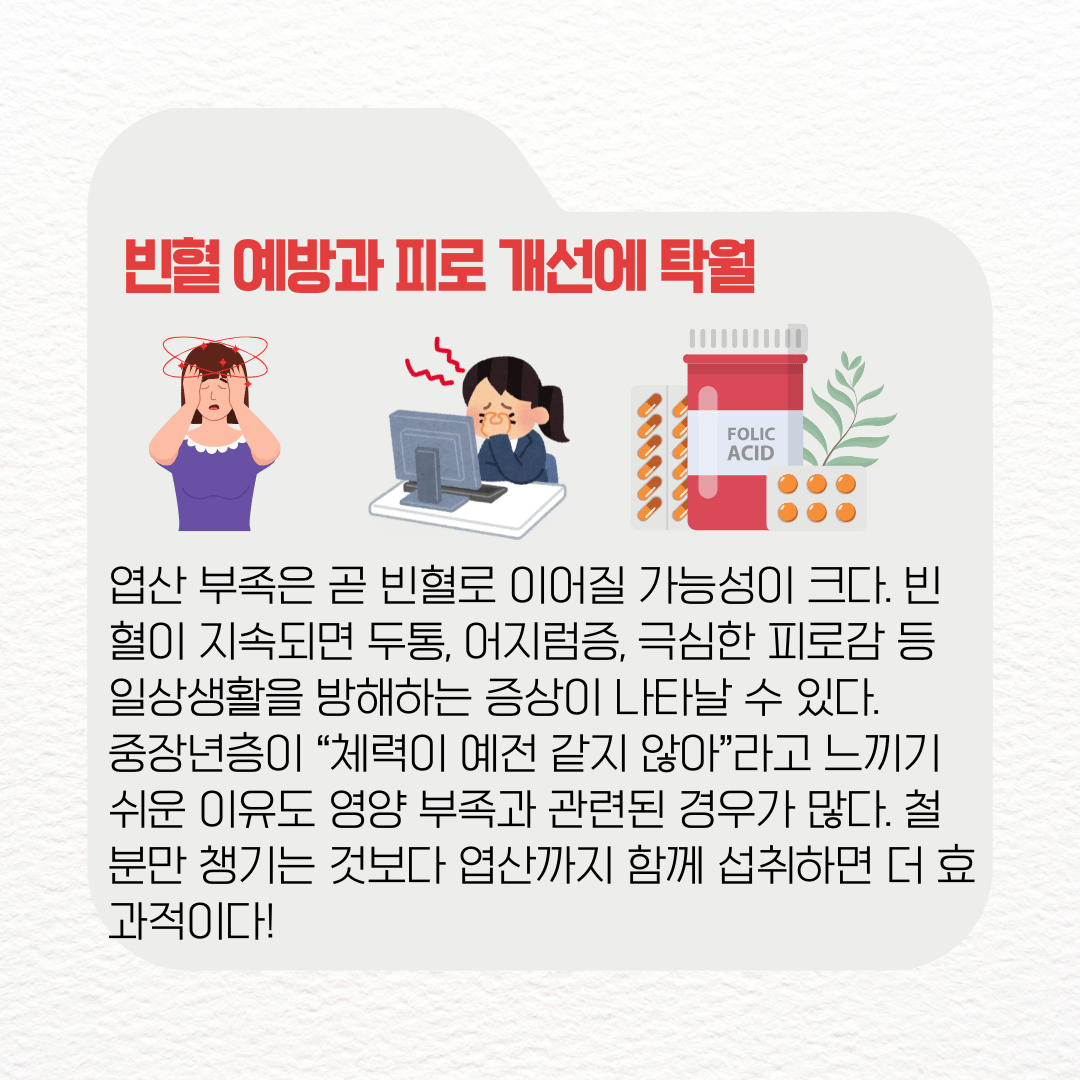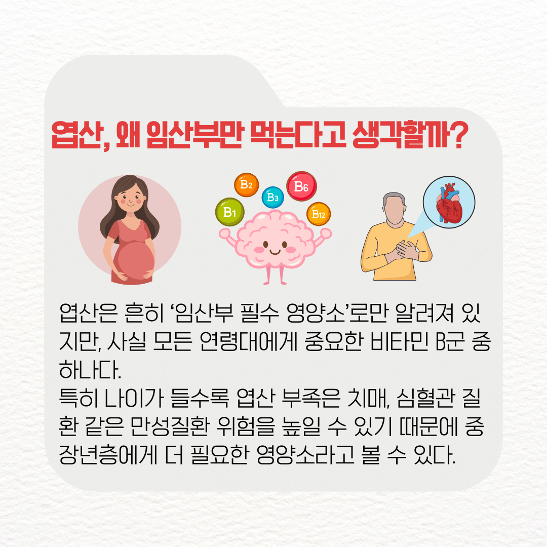 정리하자면! 엽산은 임산부만을 위한 영양소가 아니다. 치매 예방, 심혈관 건강, 빈혈 개선까지!