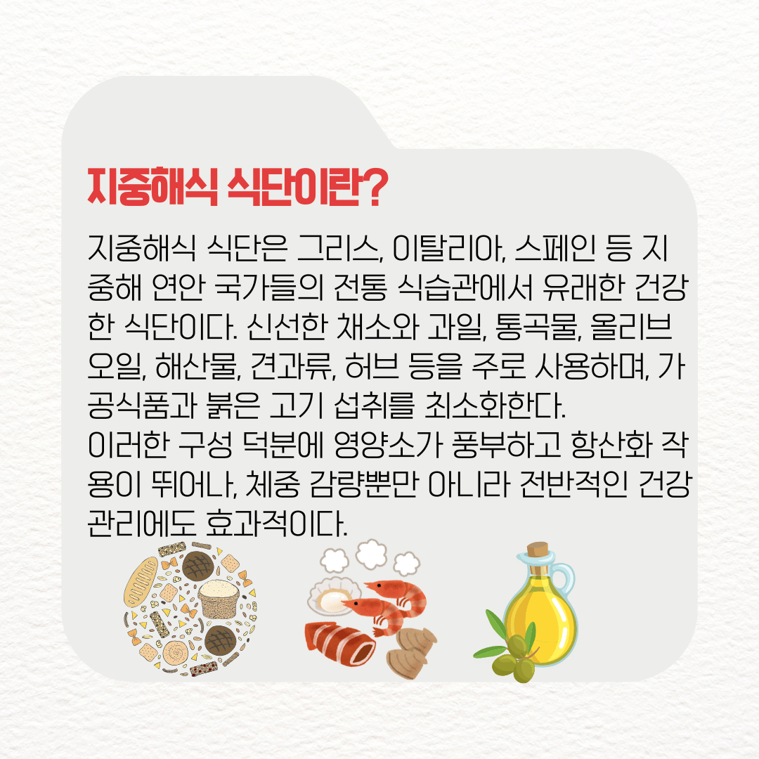 지중해식 식단은 단기적인 다이어트 효과뿐만 아니라 장기적인 건강 관리에도 탁월하다.