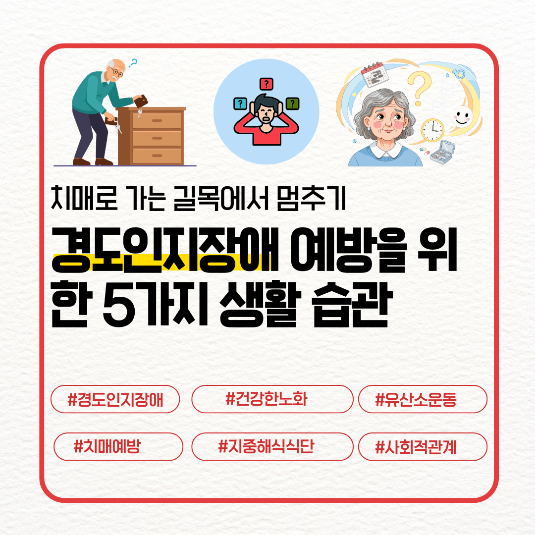 경도인지장애는 조기에 발견하고 관리할수록 치매로의 진행을 늦추거나 예방할 가능성이 높아진다. 60세 이상이거나 가족력이 있는 경우, 기억력 저하가 느껴진다면 정기적인 인지기능 검사를 받는 것이 좋다.