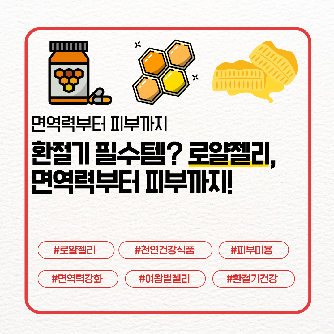 특히 로얄젤리의 주요 성분인 10-HDA는 항균, 항염 효과가 있어 감기나 독감 등 환절기 질병 예방에 도움이 된다고 알려져 있다. 꾸준한 섭취를 통해 환절기 건강 관리에 도움을 받을 수 있다.
