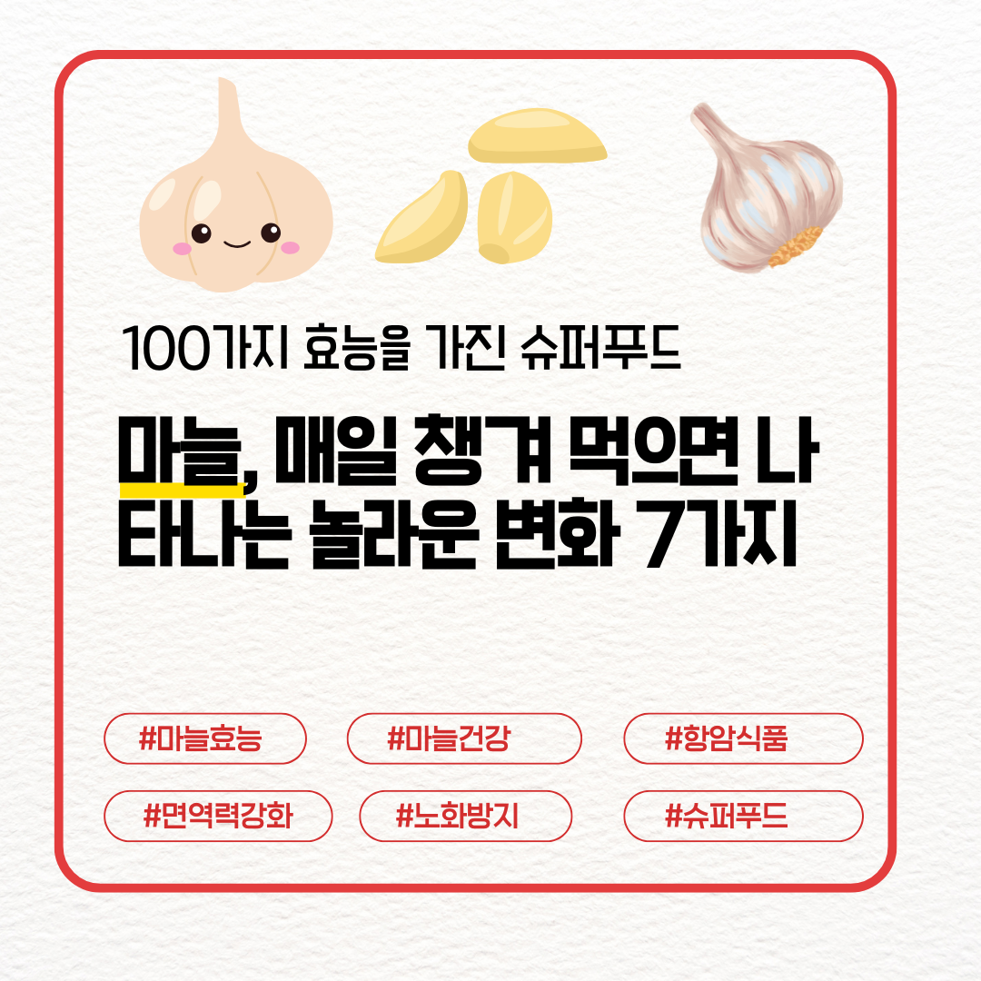 특히 피부의 탄력 저하나 주름 생성, 기력 저하 같은 노화 징후를 예방하는 데 효과적이며, 꾸준한 마늘 섭취는 피부 건강과 신체 전반의 젊음을 유지하는 데 도움을 준다.